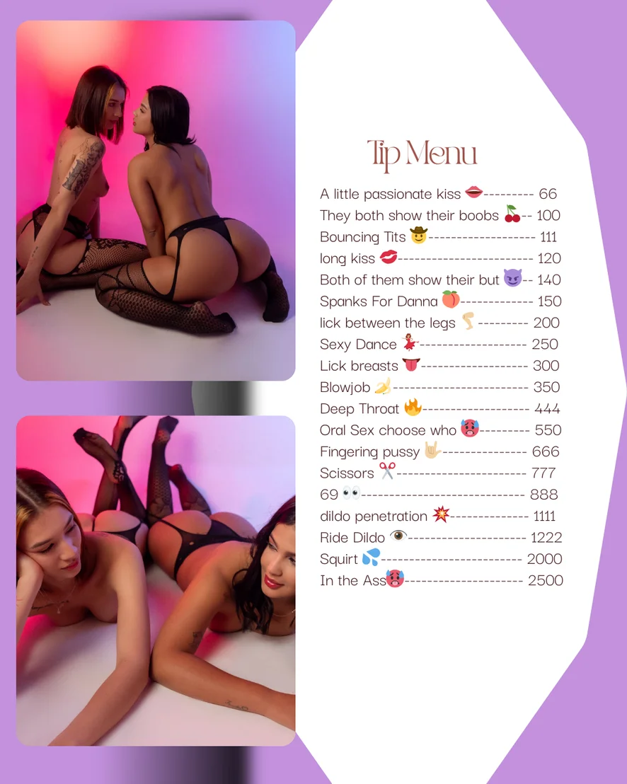 Spanking, Erotic Dance, Kissing, Striptease, Massage, Heels, Upskirt, Twerk, Topless, Ahegao, Doggy Style, Kiss With Tongue, Camel Toe, Double Penetration, Nipple Toys, Sex Toys, Blowjob, Masturbation, Tittyfuck, Cowgirl, Oil Show, Footjob, Humiliation, Foot Fetish, Strapon, Dildo or Vibrator, Dirty Talk, Flashing, Role Play, Squirt, 69 Position, Hardcore, Swallow, Orgasm, Pussy Licking, Deepthroat, Anal Toys, Creampie, Rimming